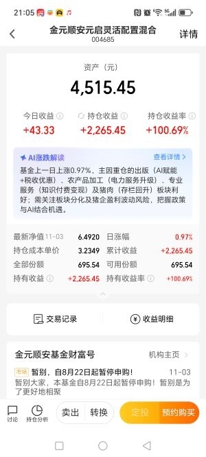 虽然买的不多但是很给力,今天翻倍纪念一下