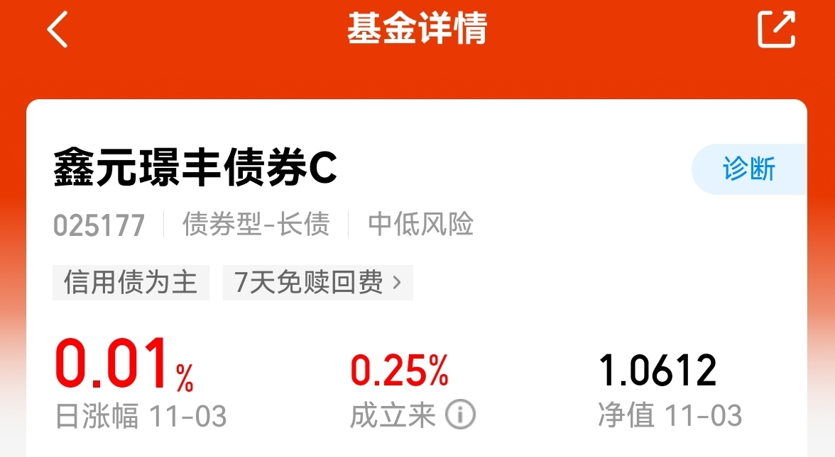 11月3日大盘开盘震荡,市场对后续走势分歧仍存。$鑫元璟丰债券C$今日收蛋1个,