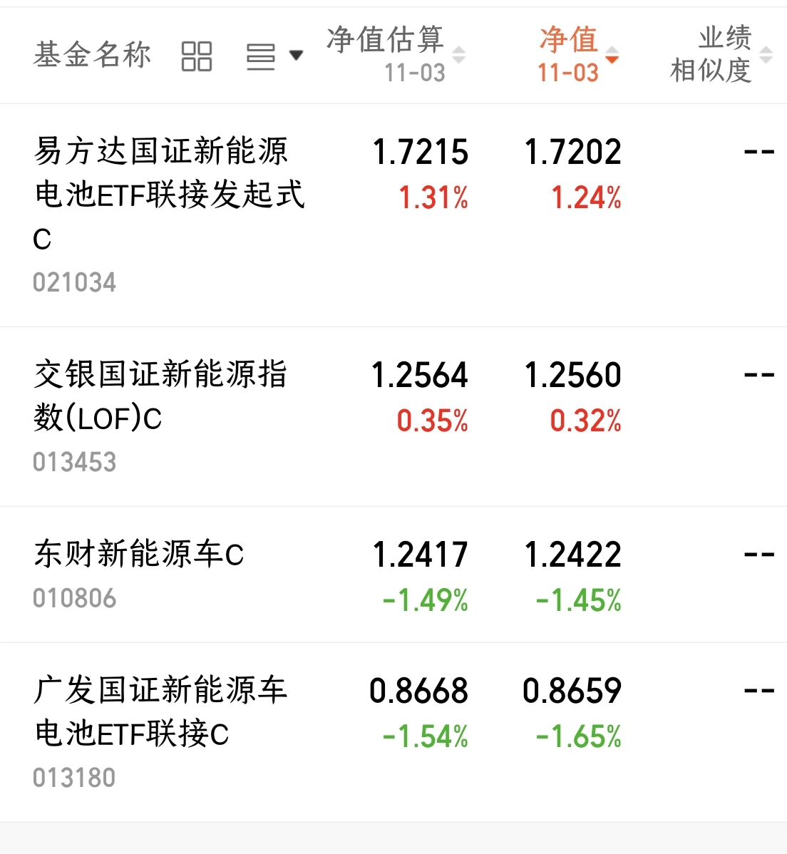 $东财新能源车C(OTCFUND|010806)$今日回调1.45%