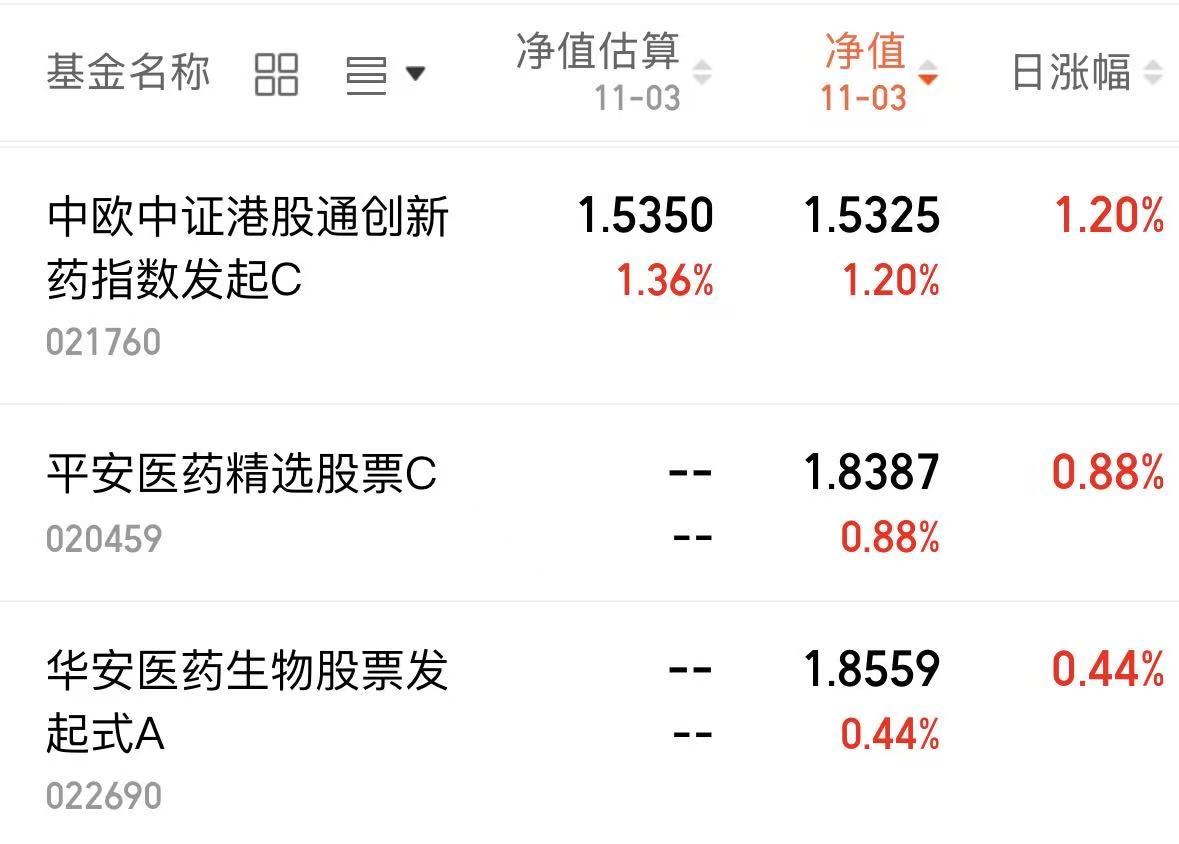 创新药今天表现不错,支撑创新药上涨的根本还是研发成果的不断落地和商业化进程的加速,现如今越来越多的创新药获批上市,进入医保目录,市场份额不断扩大,销售收入持续增长,带动了企业的整体业绩,虽然前面时间有调整,但是我认为创新药的行情还可以继续期待。$中欧中证港股通创新药指数发起C(OTCFUND|021760)$+1.2%,$平安医药精选股票C(OTCFUND|020459)$+0.88%,$华安医药生物股票发起式A(OTCFUND|022690)$+0.44%。