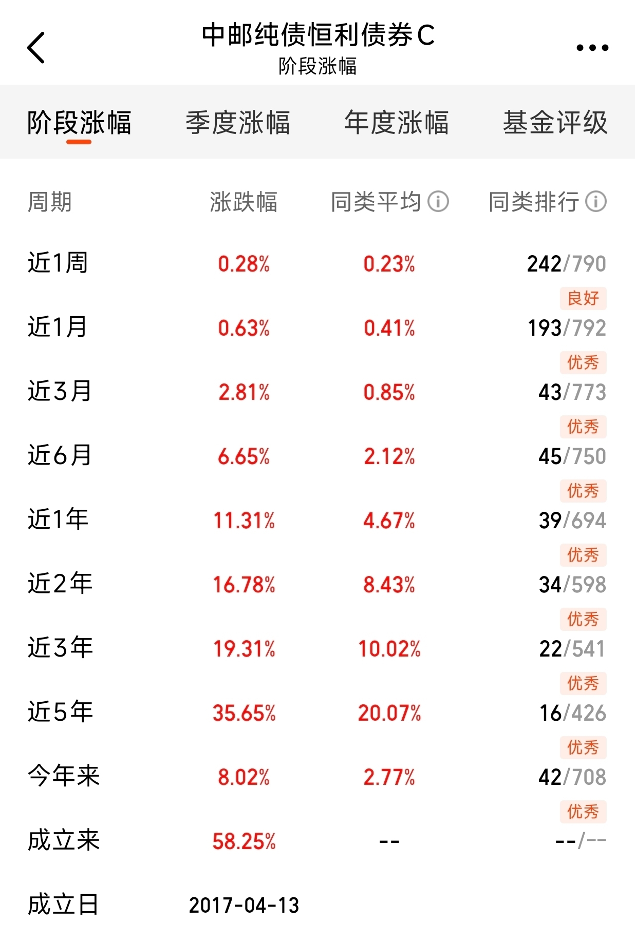 #11月基金投资策略# 稳妥一点,自己11月还是以稳健为主了,$中邮纯债恒利债券C$ 昨天7个蛋,也是开门红了,继续加油