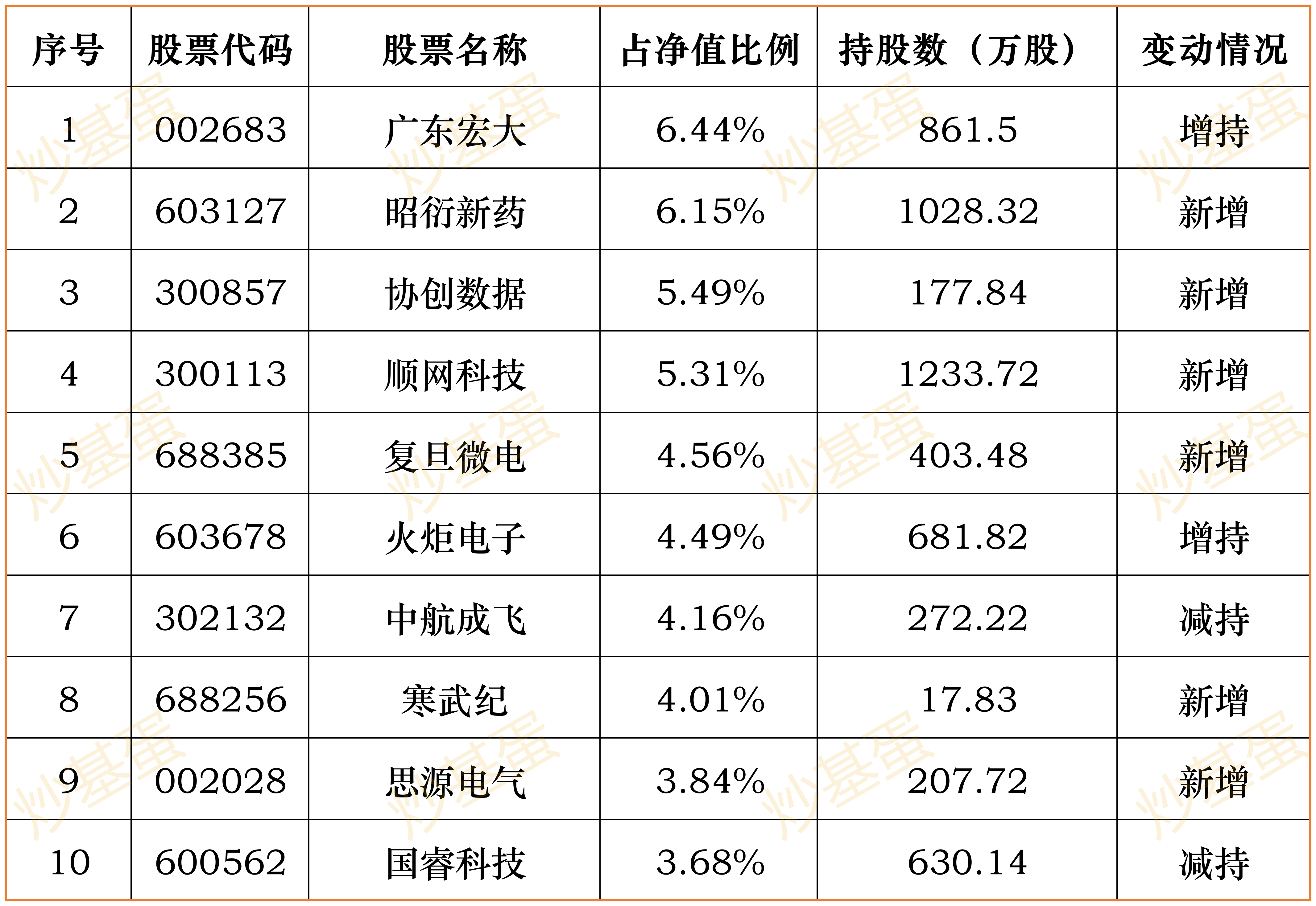 前十持仓股占比49.77%→48.13%,3季度涨25.61%。新增昭衍新药、协创数据、顺网科技、复旦微电、寒武纪、思源电气,其他各有增减。这位基金经理发迹于上波新能源的行情,整体偏科技属性。
