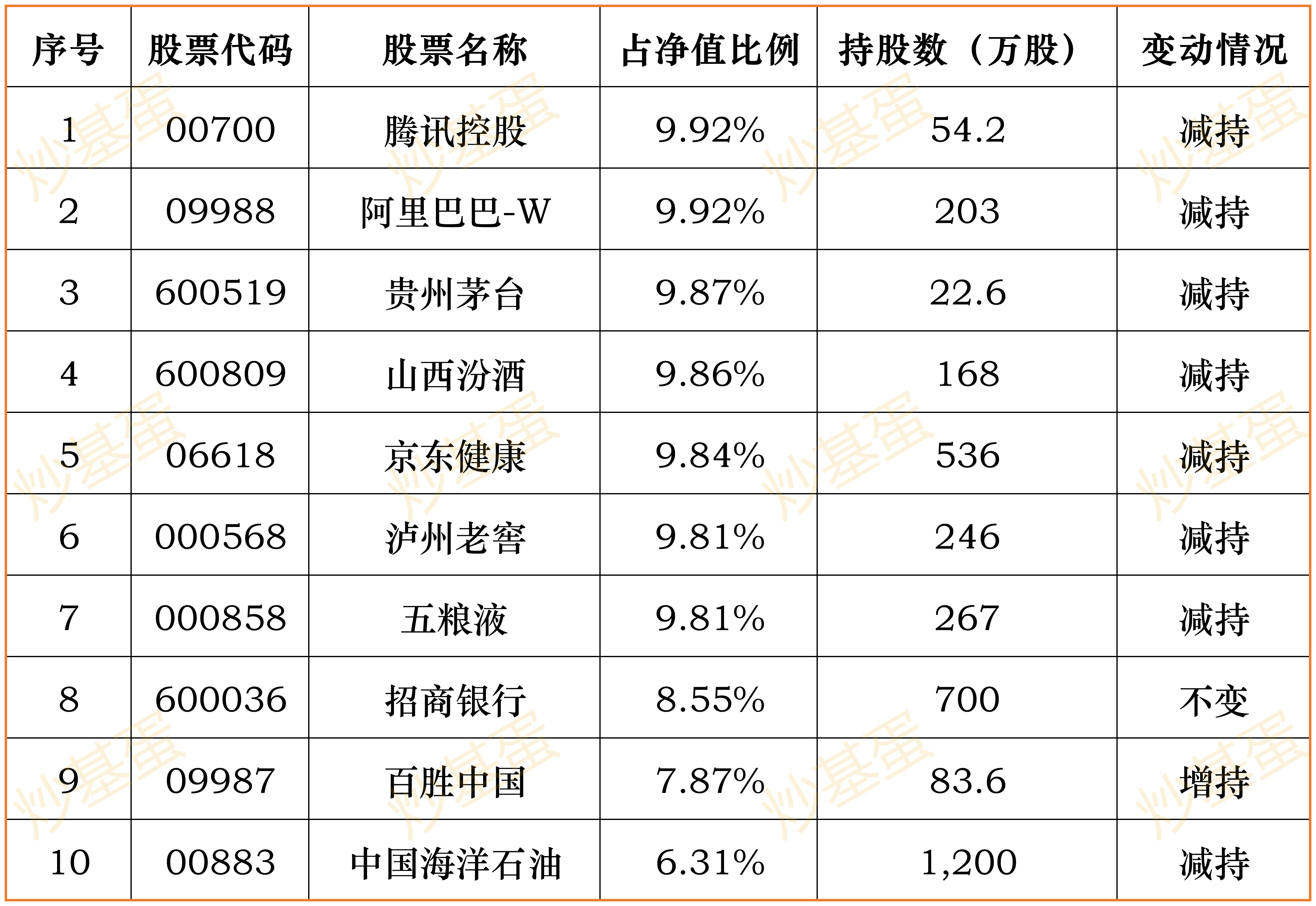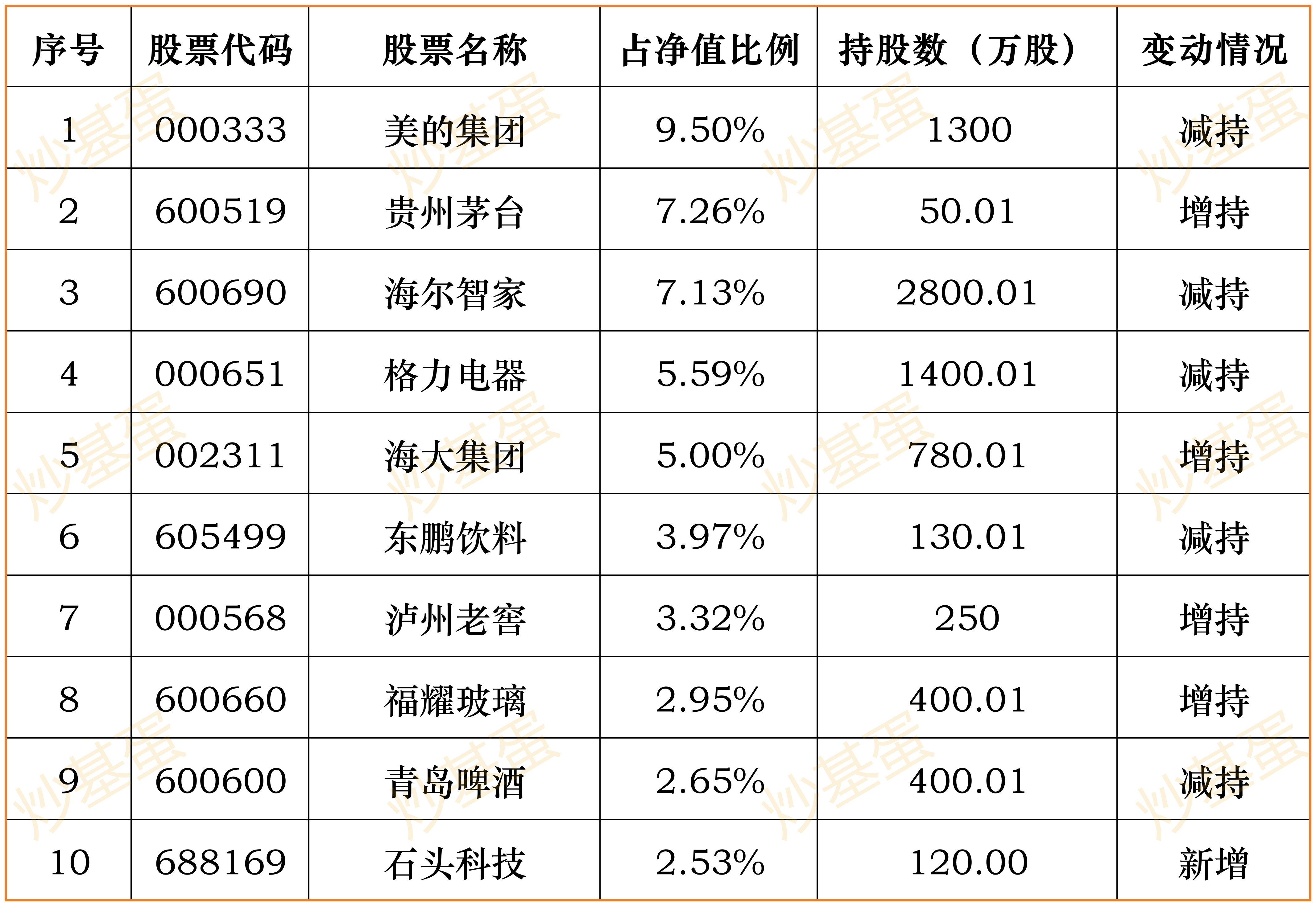 前十大持仓股占比86.86%→91.96%。增持百胜中国,招商银行不变,其他都有所减持。有人觉得持股集中度反而高了,可能是季报阶段股价上涨,涨的比卖的多,都是略微减持。3季度涨15.81%,略微跑输沪深300。