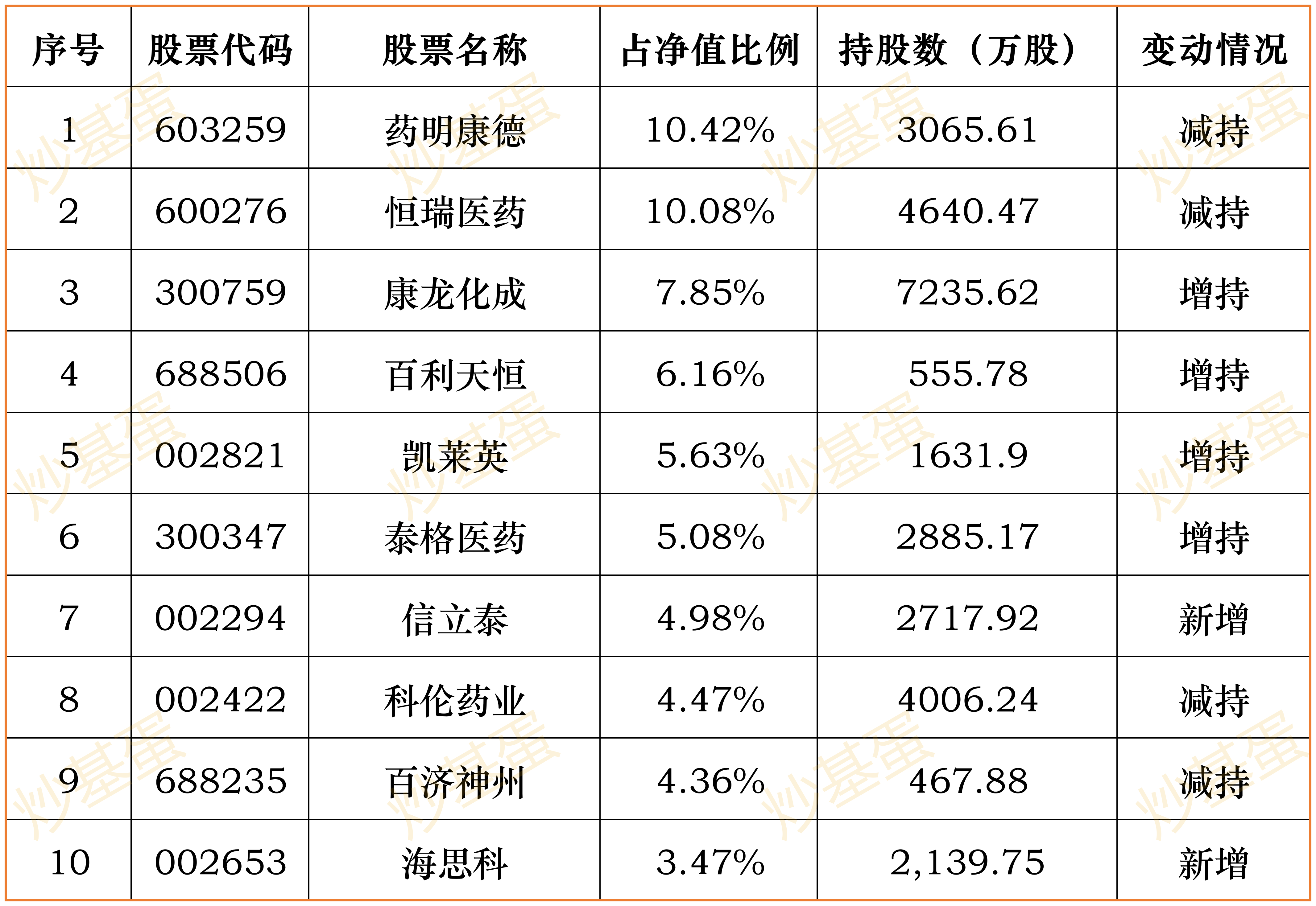 前十持仓股占比54.73%→62.50%。新增信立泰、海思科,其余各有增减。3季度涨22.55%。葛兰算是依靠医药主题起来的基金经理,同时另一只医药创新侧重创新药,业绩要明显好很多。另外,她还管理一只全行业选股的基金,科技属性比较强,侧重芯片半导体,业绩也很炸裂。