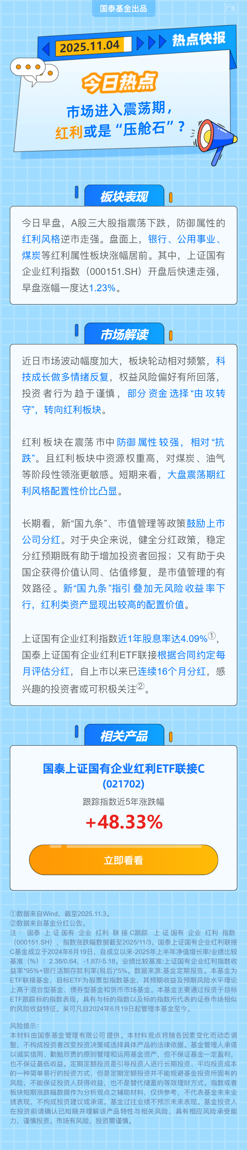【热点快报】市场进入震荡期, 红利或是“压舱石”?