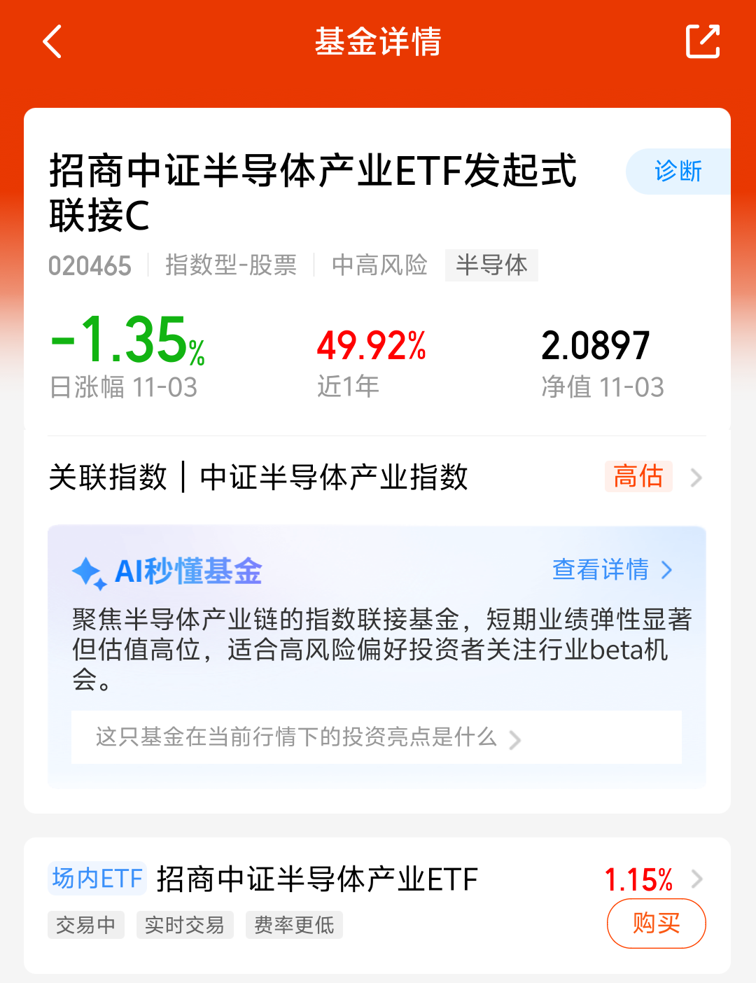$南方中证半导体产业指数发起C(OTCFUND|020840)$