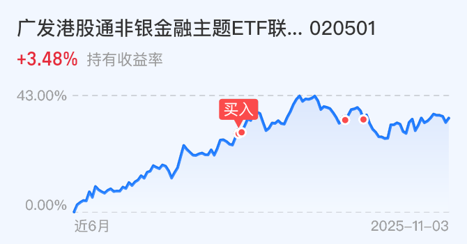 今天上午,股市和昨天上午差不多,都是涨红利,然后杀科技。持仓中对红利配置相对较少,仅有1只稍微沾边,但还是顶不住其他板块的下跌。$广发中证港股通非银ETF发起式联接C(OTCFUND|020501)$