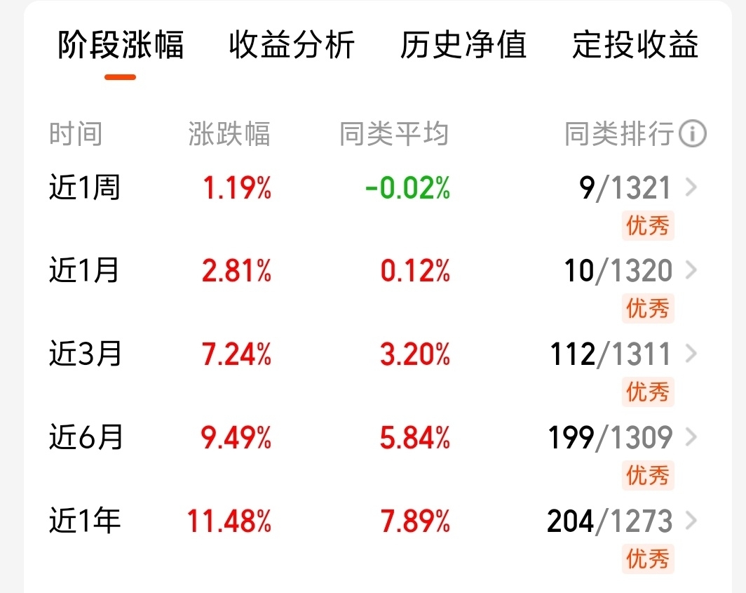 平安恒泽混合C 堪称稳健理财标杆!核心聚焦稳健收益目标,通过严格控制回撤+股债灵活配置的策略,精准把握市场结构性机会,既抗跌又具进攻性。截至目前年涨幅达11.48%,业绩表现稳稳当当,用实力为投资者财富保驾护航。无论市场震荡与否,都能凭借扎实运作穿越周期,是中长期持有、追求财富行稳致远的优质选择,值得重点关注。