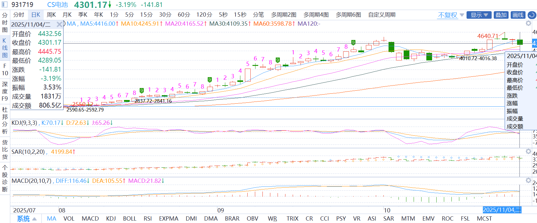 电池:虽能源金属领跌,但固态电池量产预期是长期支撑。技术面调整中,麦爸认为还是轻仓可分批低吸,重仓躺平,麦爸上周五已低吸,今天先继续躺平,等个消化。