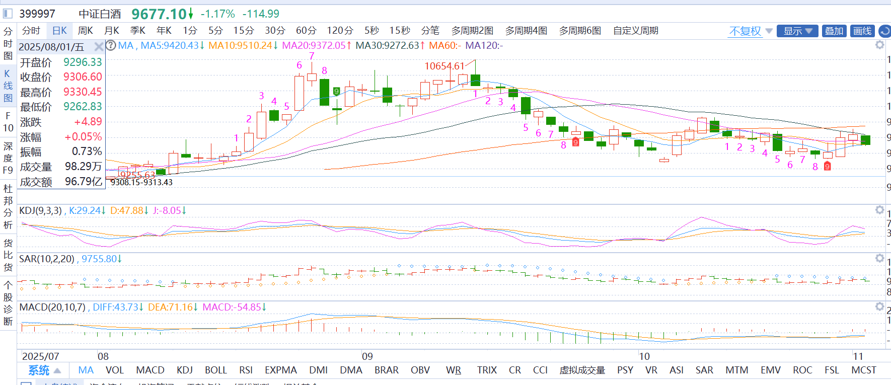白酒板块:近期指数反弹乏力,虽偶有小红盘但难持续,有回踩20日线迹象。别急于抄底,先观望等待调整到位。麦爸选择先不动!