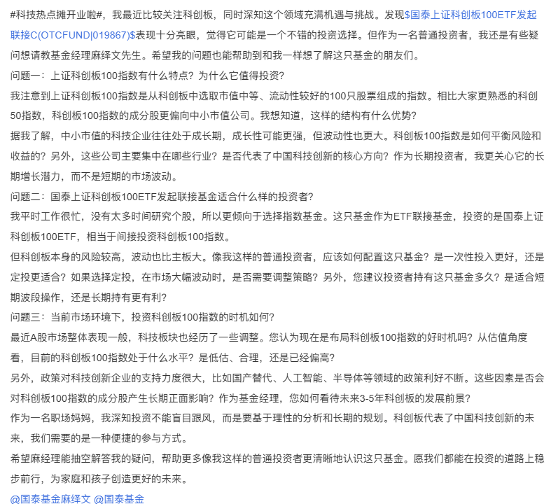 $国泰上证科创板100ETF发起联接C(OTCFUND|019867)$ $国泰上证科创板100ETF发起联接A(OTCFUND|019866)$