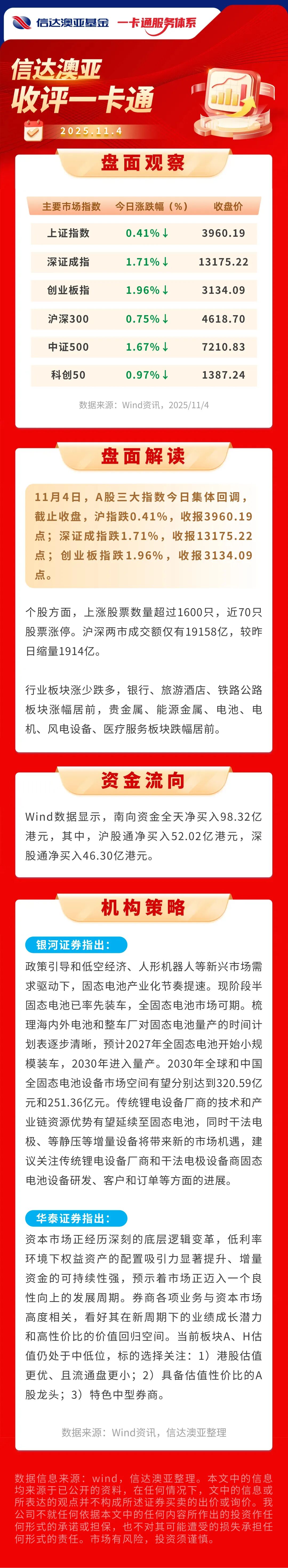 【收盘点评】A股三大指数今日集体回调,沪指跌0.41%,收报3960.19点