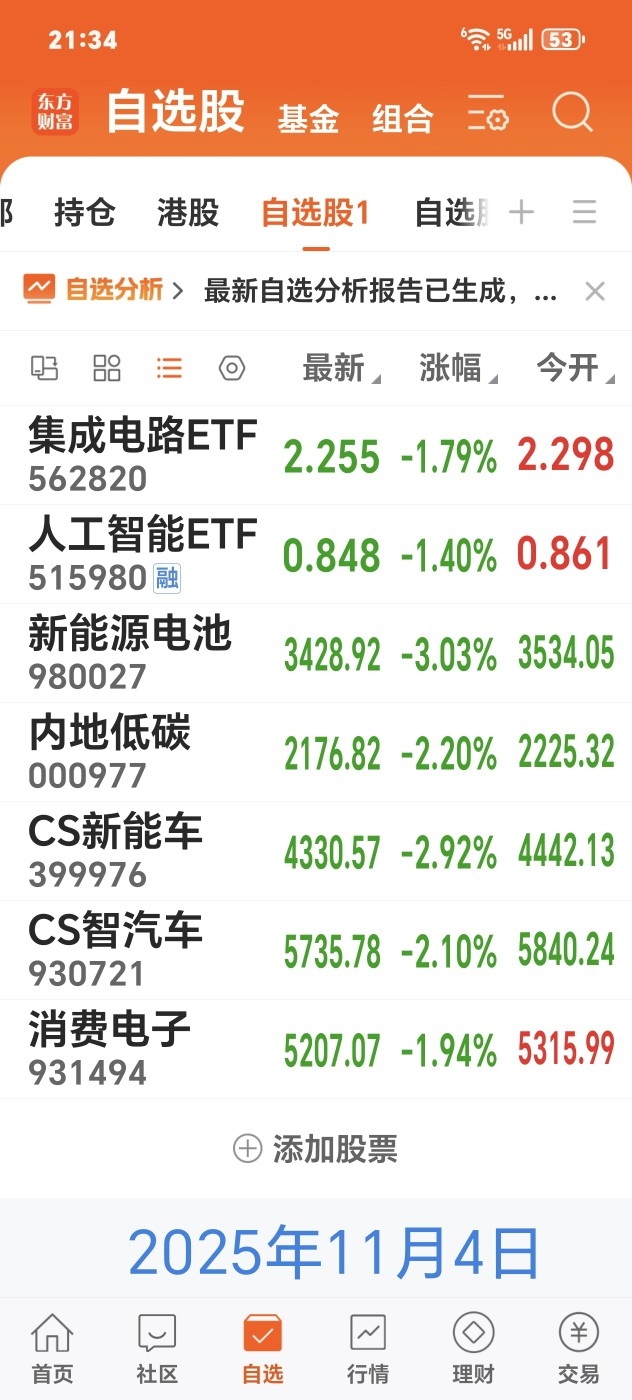操作方面:场内账户,继续亏损,今日除科创50做了一次T,没有其他交易。