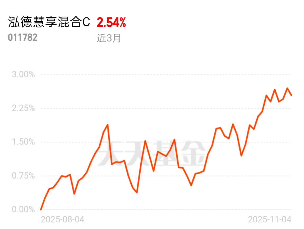 泓德慧享混合C是偏债固收+,近3月涨2.54%,长期收益和回撤都很能打。