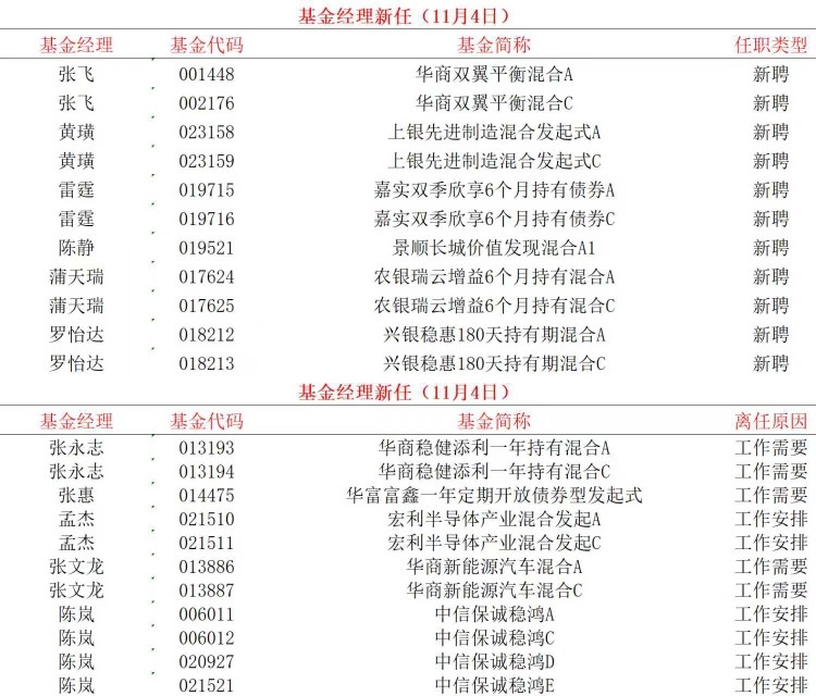11月4日基金经理变更公告