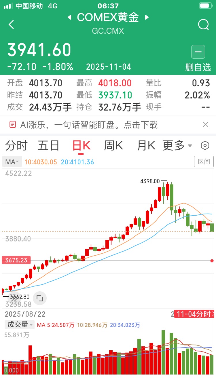 黄金白银再度下跌:4日夜间,黄金下跌1.81%,白银下跌2.4%,ICE布油下跌