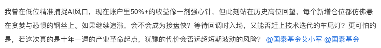 相关产品:$国泰中证全指通信设备ETF联接C(OTCFUND|007818)$ $国泰半导体设备ETF联接C(OTCFUND|019633)$ $国泰上证科创板芯片ETF发起联接C(OTCFUND|024854)$ $国泰创业板新能源ETF发起联接C(OTCFUND|025363)$ $国泰中证光伏产业ETF发起联接C(OTCFUND|013602)$