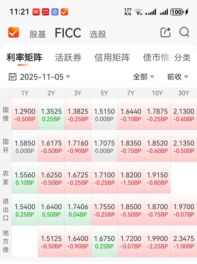 观察利率债:24红、3平、7绿。(红色,是涨。绿色,是跌。)