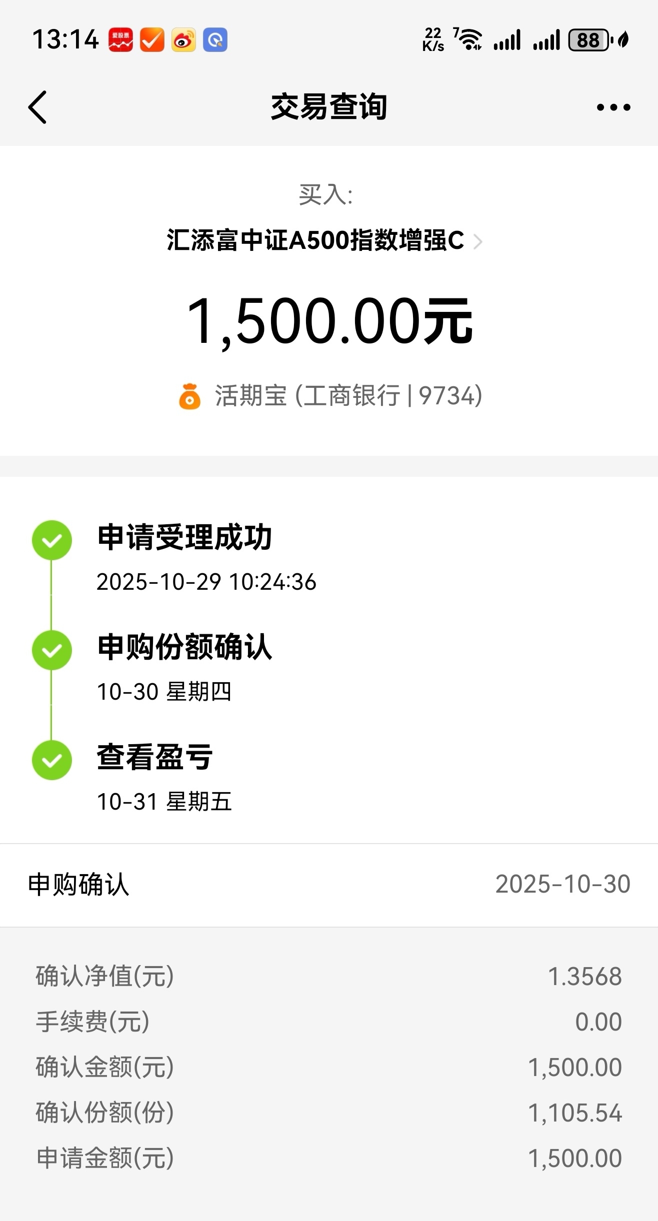 在今天,打算趁着某股中证a500指数,在今天来个超跌反弹小涨的时候,打算考虑选择减仓卖出够7天的部分持有份额某个中证a500指数基金的打算。