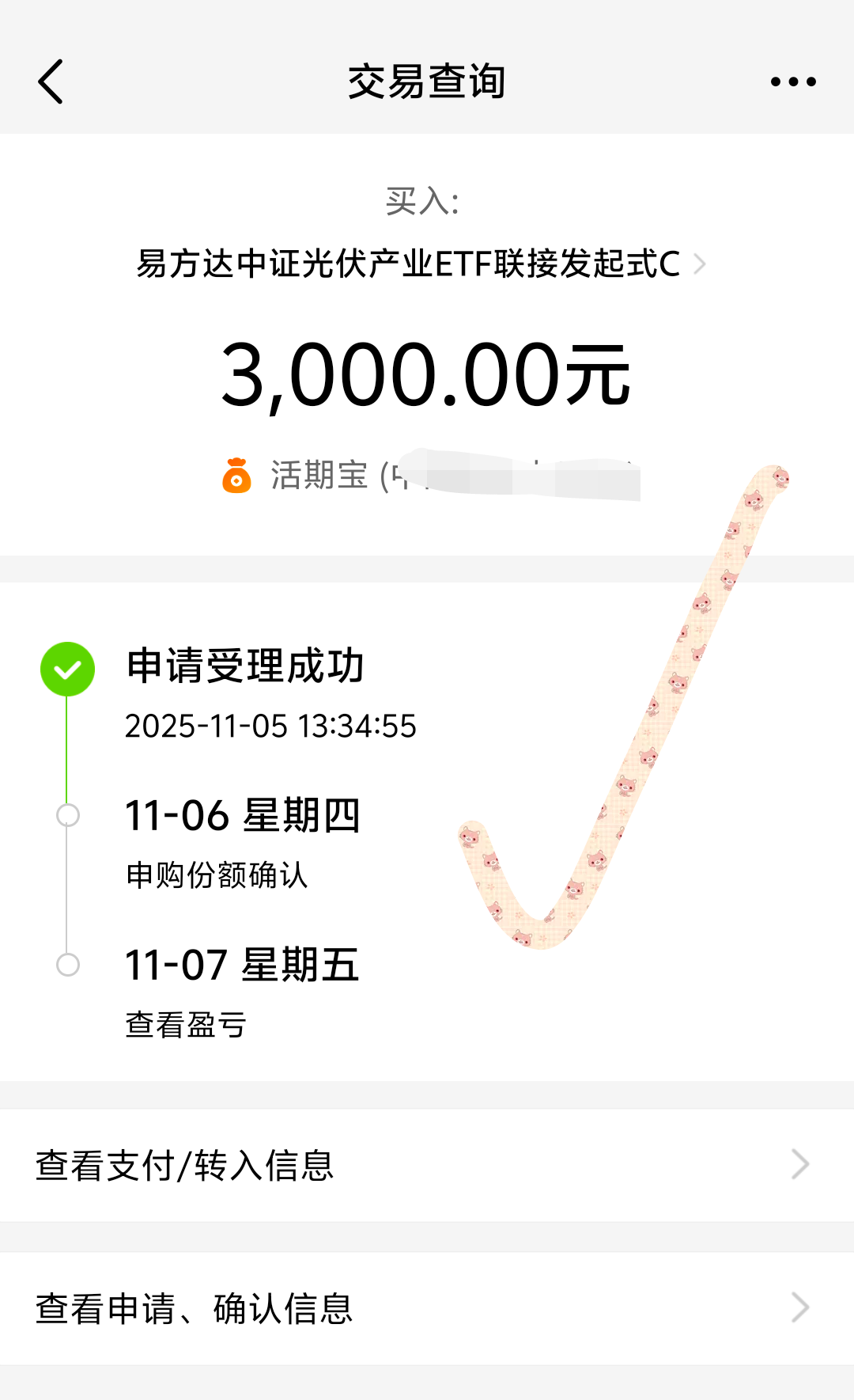 大盘今天涨起来了,光伏板块今天大涨,中证光伏产业指数目前预估涨幅已经4.49%了,马上就接近五个点了,太强了!光伏板块发展前景还是很广阔的,全球能源转型加速,技术持续进步,市场需求旺盛,看好这个方向,今天加仓易方达中证光伏产业C3000元!