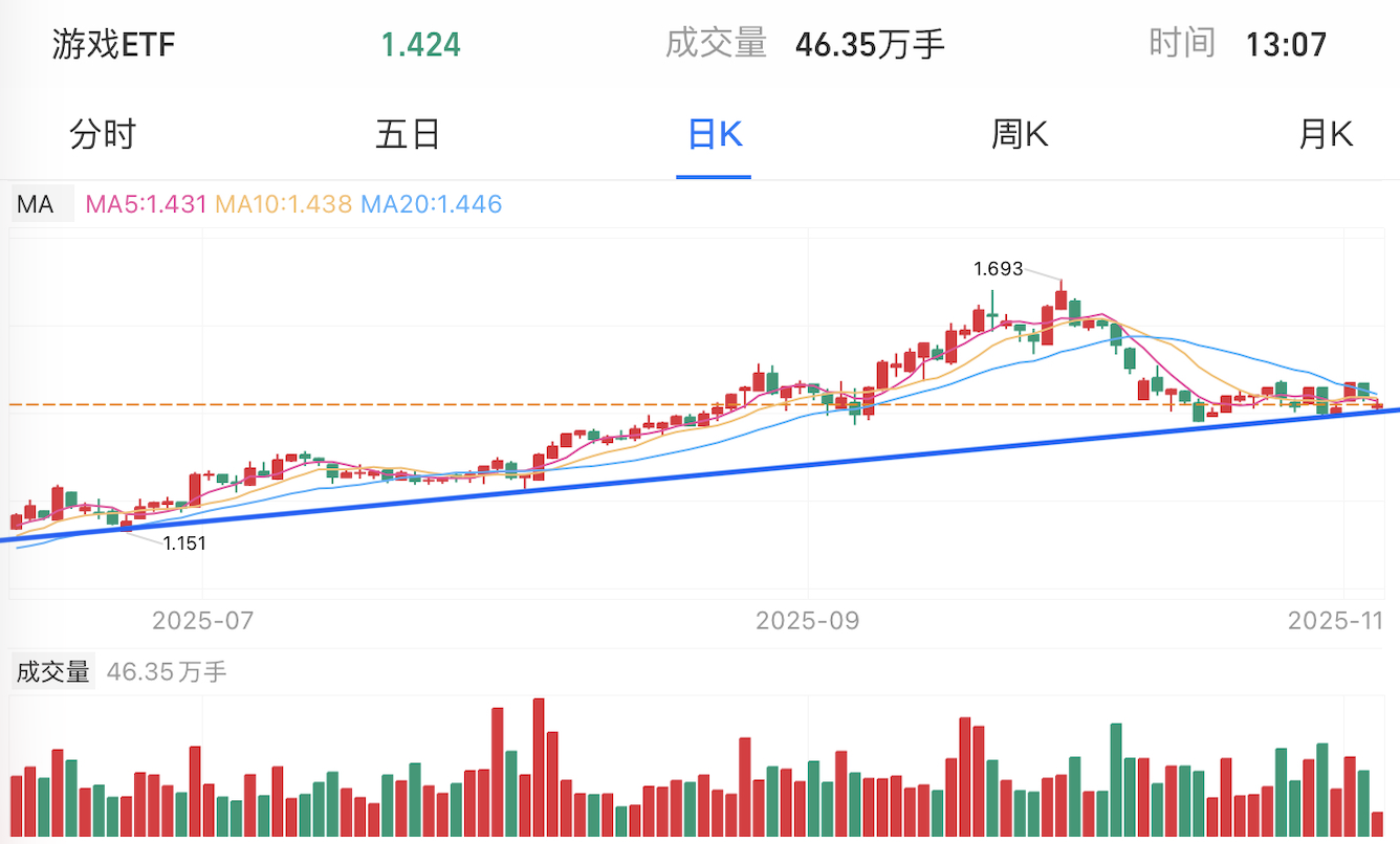 游戏和稀土在一波较大行情后回落,这两日跌破上涨趋势线,跌至前低支撑位,跌破则可能进入回调阶段。