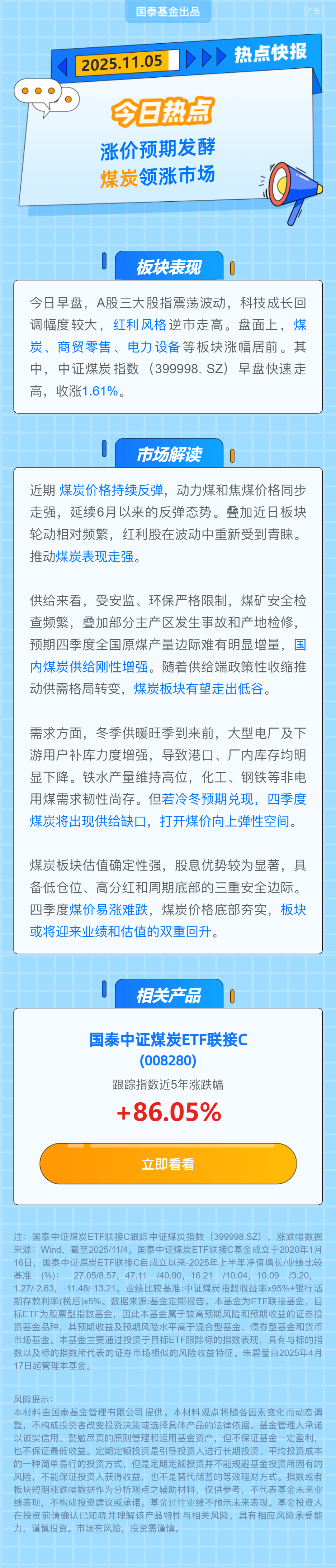 $国泰中证煤炭ETF联接A(OTCFUND|008279)$$国泰中证煤炭ETF联接C(OTCFUND|008280)$$国泰中证煤炭ETF联接E(OTCFUND|022501)$