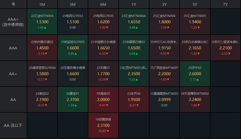 信用债:晴,其中城投债晴,产业债晴,二级资本债晴,银行永续债晴,商业银行债晴