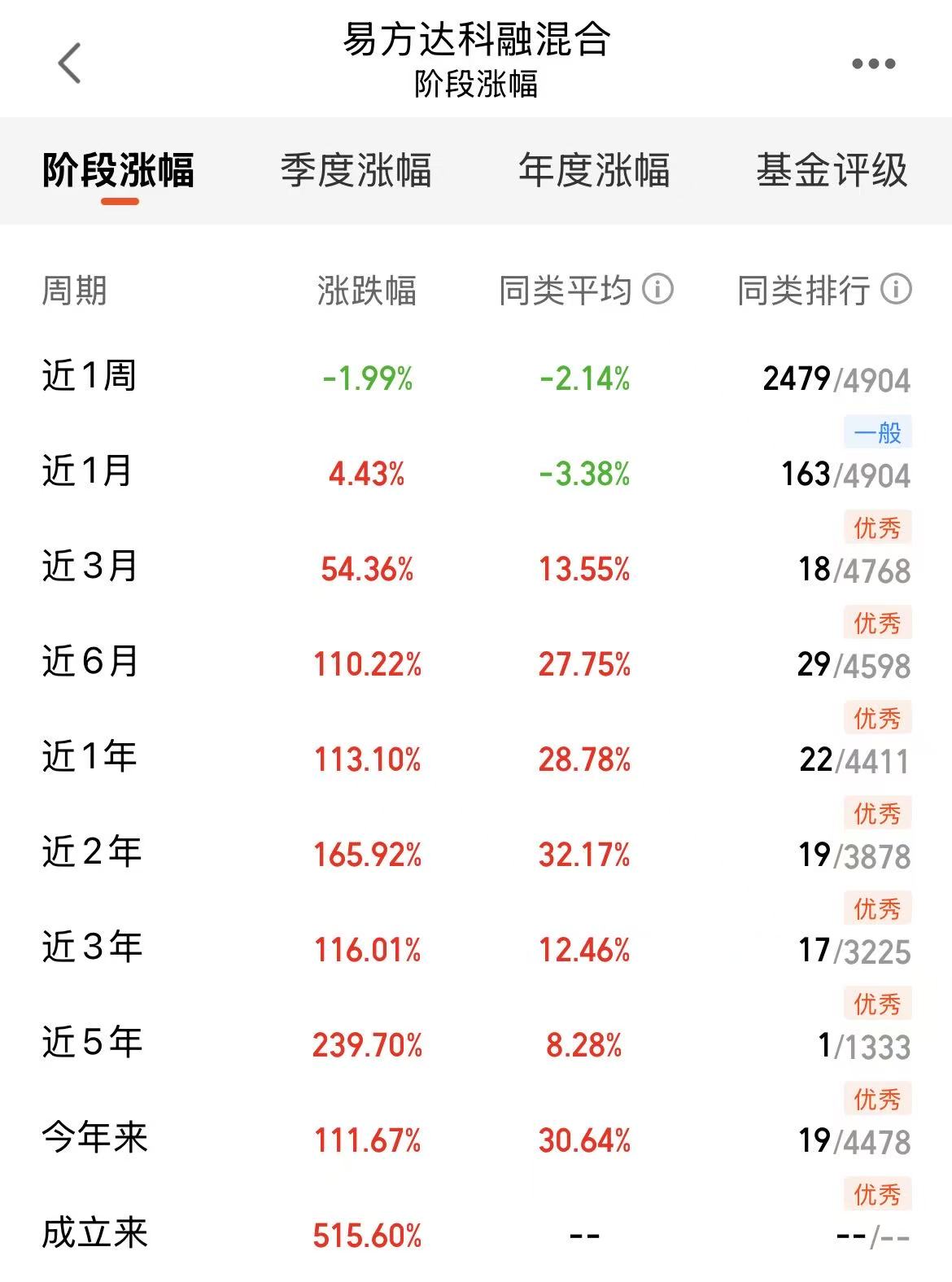 今天的港股和A股还在回调呢,还好现在很多板块都慢慢翻红了,十四五规划力推科技与新兴产业,多地推进数字经济园区建设等等,科技还是当前的主线呢。易方达科融混合是覆盖科技、新能源、高端制造等赛道的,回撤控制的不错,年化收益率113.1%,长期持有挺不错的。$永赢先锋半导体智选混合发起C(OTCFUND|025209)$ #“马”字辈股大涨!“玄学炒股”又来A股?# #大消费板块逆市拉升!行情能否持续?#