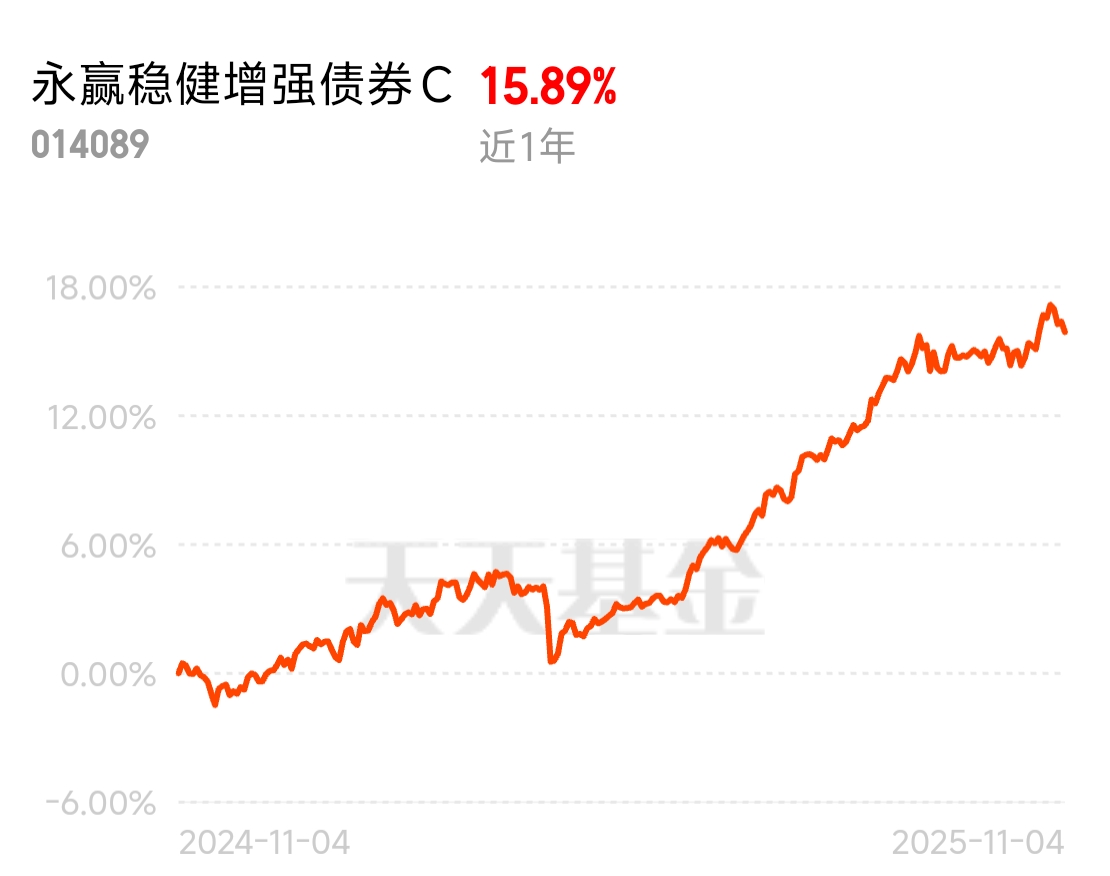 债市下午这边也迎来上涨,我顺势布局$永赢稳健增强债券C$,今天预估值有20个大蛋,表现很强,就算遇到行情震荡下雨天气波动回撤也较小的,因为低波固收+的特性也赋予了较强的抗风险能力,它持仓也很明确,属于股债双线布局,这样稳健的同时,还能蹭波股基行情的肉,鱼和熊掌兼得,近1年15%收益率啦,不仅紧跟市场节奏,更在稳健中不失进取,完美跟上今年行情节奏$永赢稳健增强债券C$