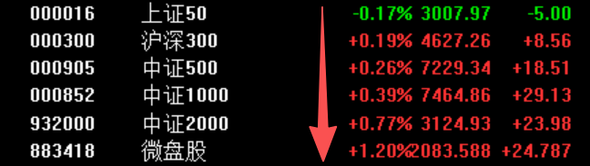 盘子小相较市场主线,对流动性要求没有这么高,而且炒小也是咱们的传统。从今天的宽基指数表现来看,盘子越往下,涨幅越大,也应证这一点。