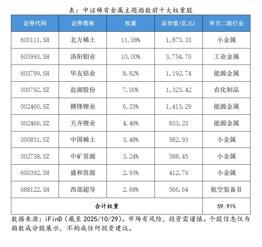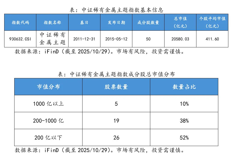 中证稀有金属主题指数选取不超过50家业务涉及稀有金属采矿、冶炼和加工的上市公司证券作为指数样本,以反映稀有金属主题上市公司证券的整体表现。