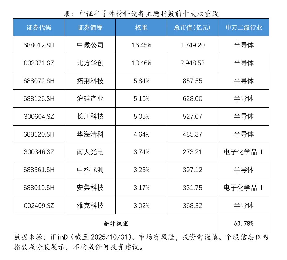 中证半导体材料设备主题指数选取40只业务涉及半导体材料和半导体设备等领域的上市公司证券作为指数样本,反映半导体材料和设备上市公司证券的整体表现。