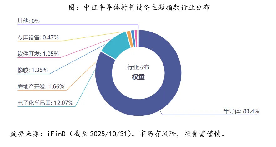 按照申万二级行业分类,除其他类别以外,指数前二大细分行业分别为半导体(83.4%)、电子化学品Ⅱ(12.07%)。