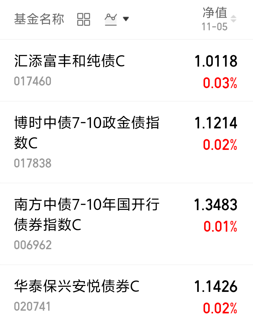$南方中债7-10年国开行债券指数C(OTCFUND|006962)$今天收了1个蛋