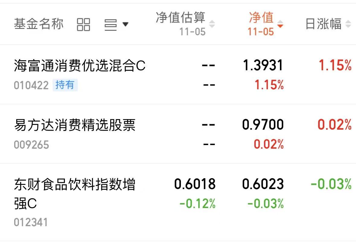 $东财食品饮料指数增强C(OTCFUND|012341)$更新-0.03%