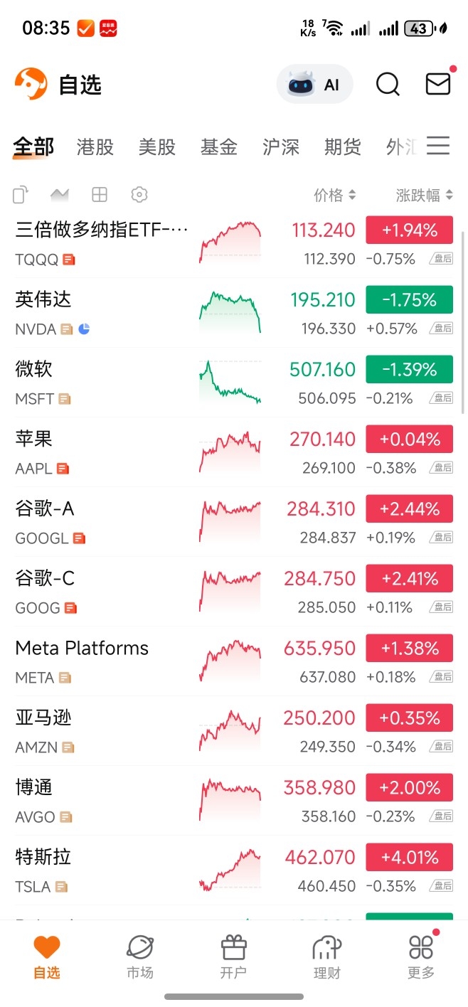 另外补充在目前,观察7朵金花+博通这些,在夜盘表现也就只有英伟达、谷歌、meta,这三个在夜盘表现是涨的。