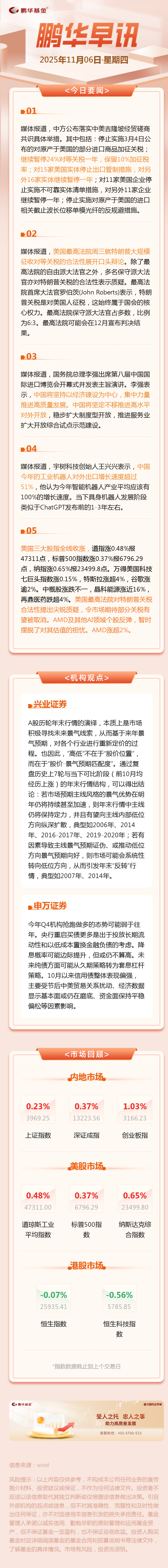 鹏华早讯11.6 中方公布落实中美吉隆坡经贸磋商共识具体举措