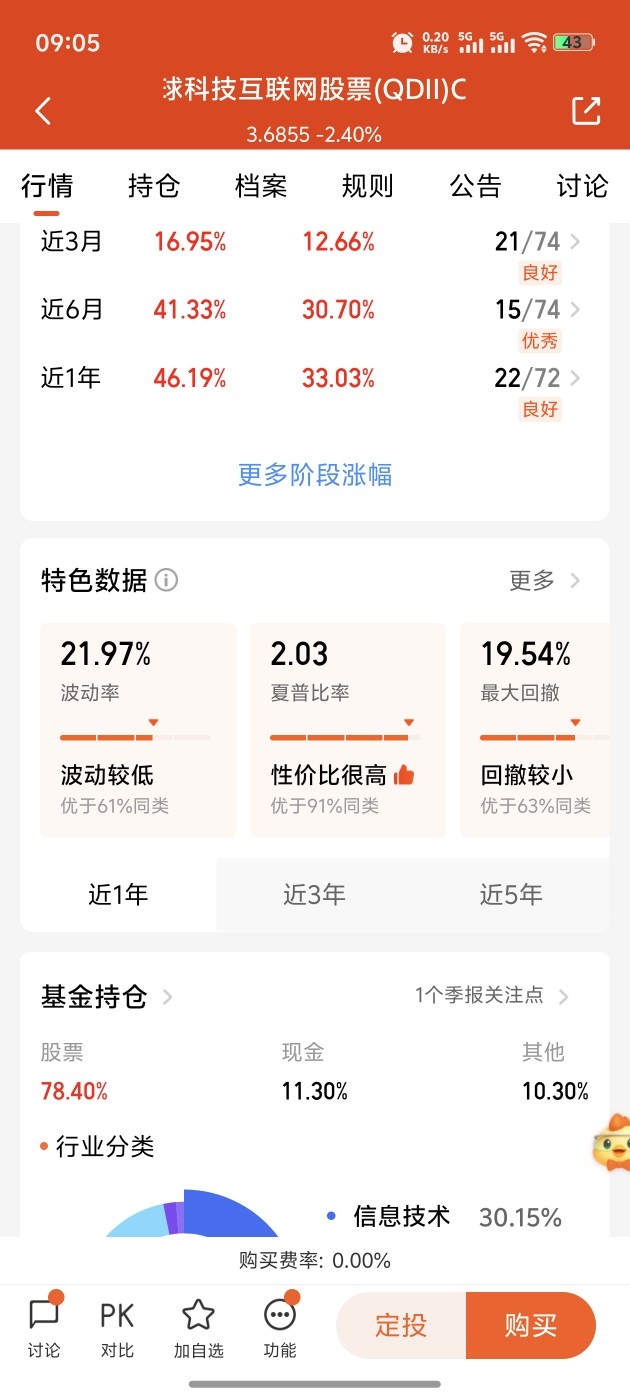 最近市场行情波动,但是要说整体好一些的,可能还是得看 $富国全球科技互联网股票(QDII)C$ 这种美股科技,近六个月收益率41.33%,同类中排名优秀,可见这基实力不低,而且还是零申购费,整体的回撤和波动都小于同类基金,现在行情拉升,倒是可以上车一波了啊#A股低开高走!国际资本看好中国资产# #“马”字辈股大涨!“玄学炒股”又来A股?#