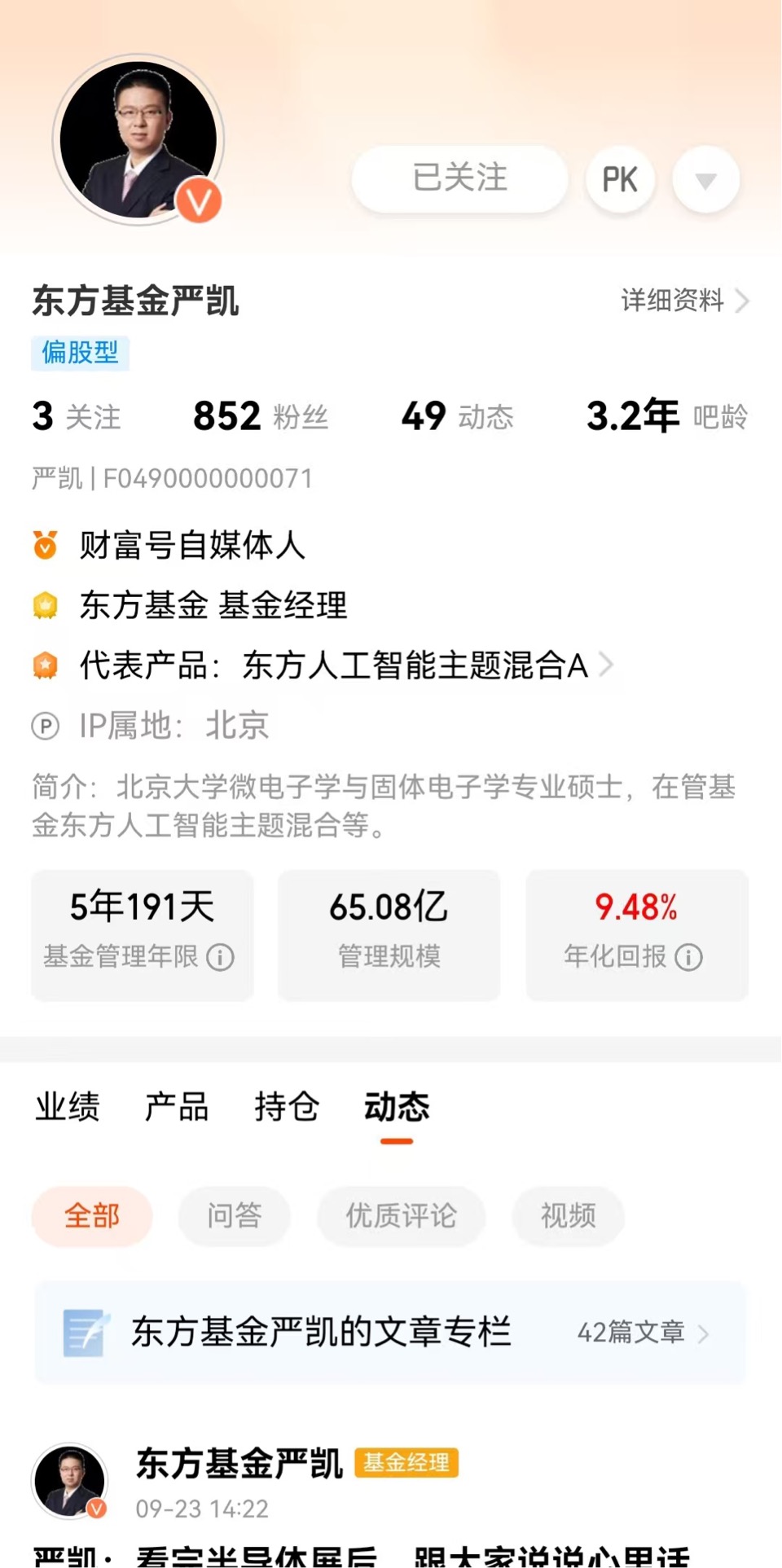 @东方基金严凯@东方基金我持有东方人工智能一段时间了,因为持有它,对半导体板块最