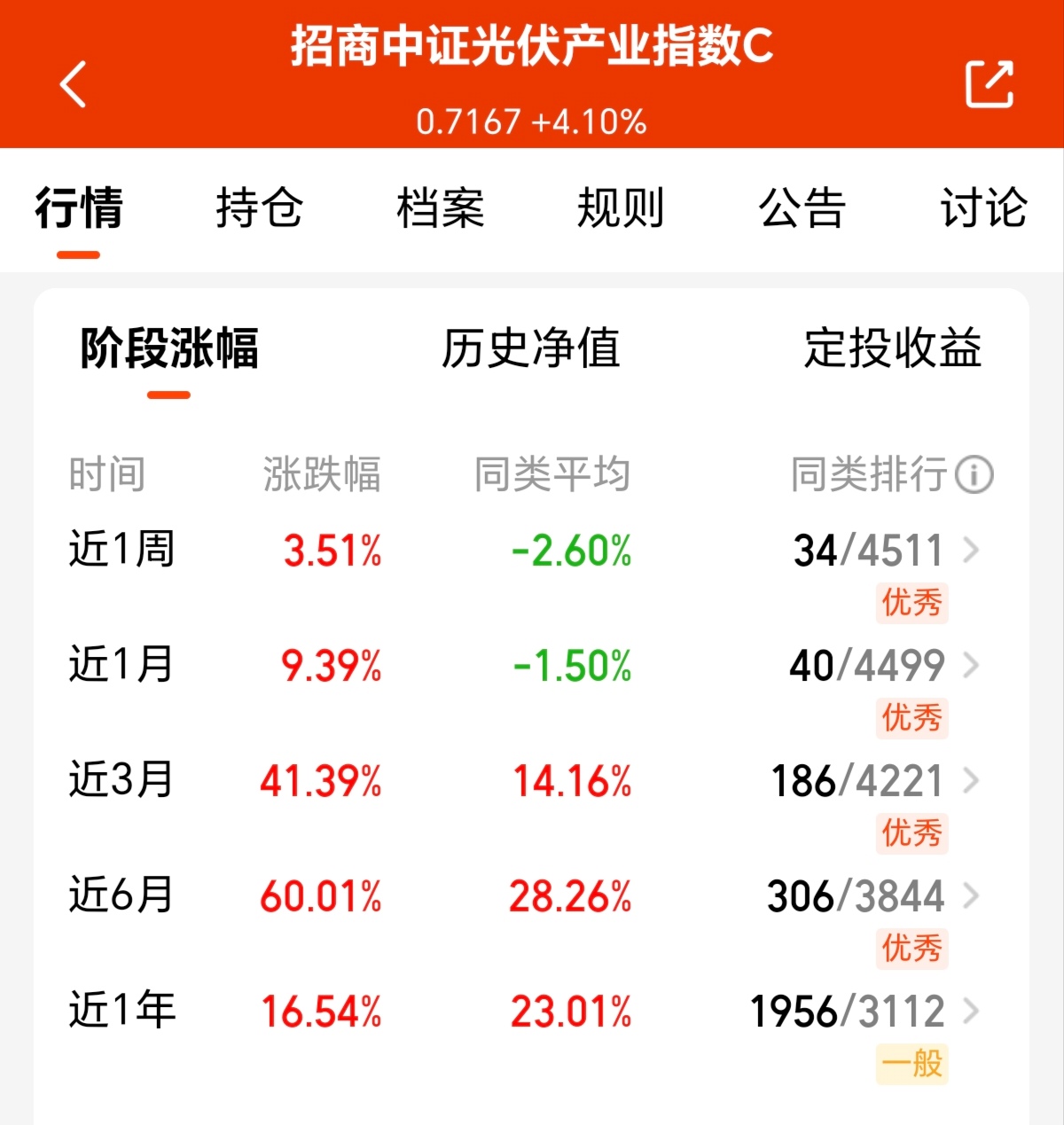 今日市场行情火热不断,三大指数涨幅越发明显,同时光伏板块也延续强势大涨趋势,而“十五五”规划还强调了巩固拓展风电光伏产业,再叠加上密集出台的“反内卷”政策,从而推动光伏产业健康发展,所以我觉得后期行情,还非常值得可期!其中我看好$招商中证光伏产业指数C(OTCFUND|011967)$实时估值再次迎来大涨,我也将长期看好这一方向啦!
