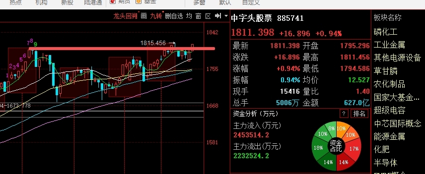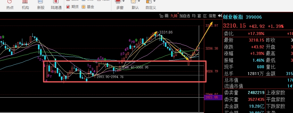 中字头有点带头突破新高的意思 创业板指也是回踩区间不跌破支撑的目前