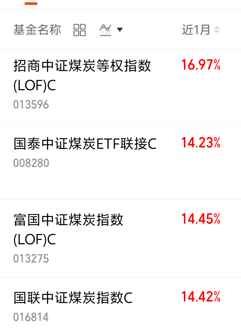 $国联中证煤炭指数C(OTCFUND|016814)$近一月涨了14.42%