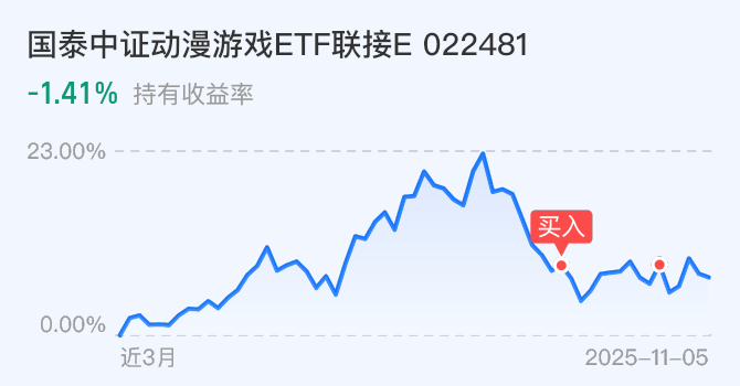 加仓10000元$国泰中证动漫游戏ETF联接E(OTCFUND|022481)$