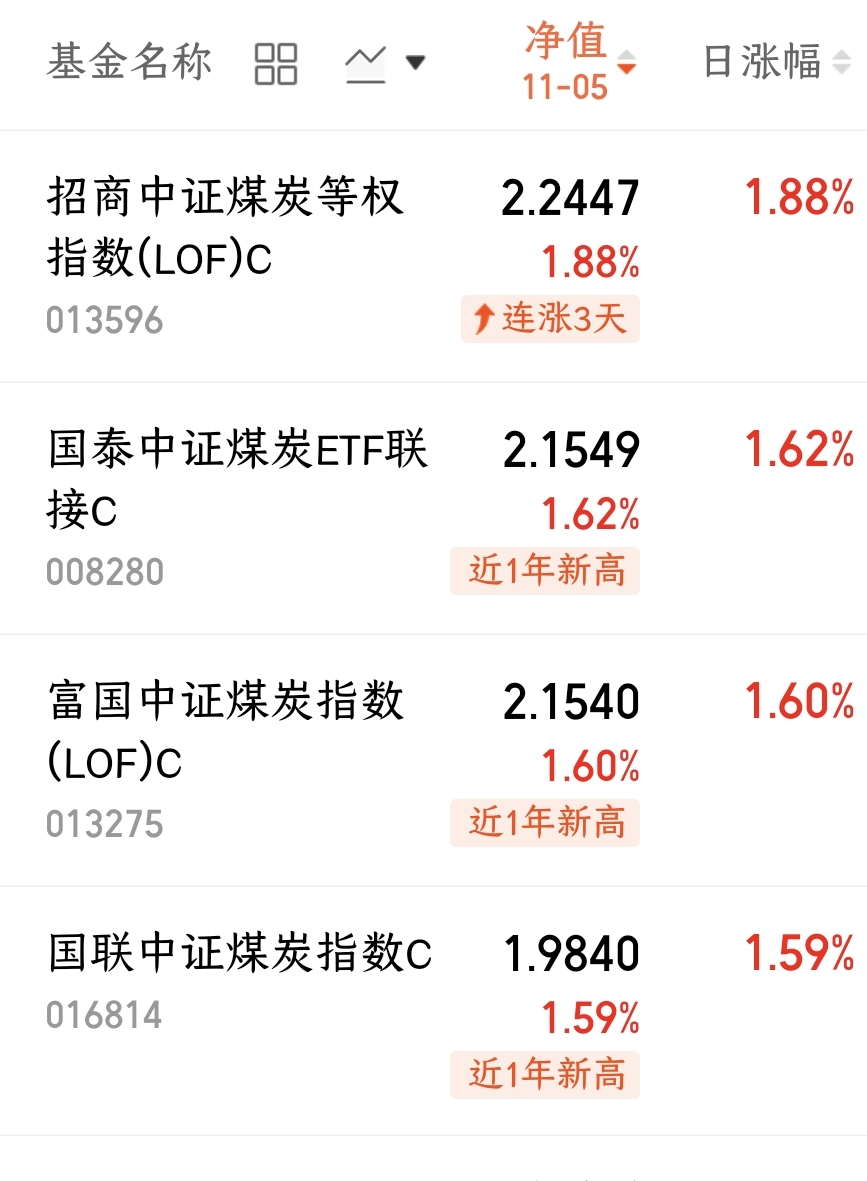 $招商中证煤炭等权指数(LOF)C(OTCFUND|013596)$昨日也是上涨了1.88%,很不错啊。