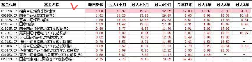 $招商中证煤炭等权指数(LOF)C(OTCFUND|013596)$涨1.88%