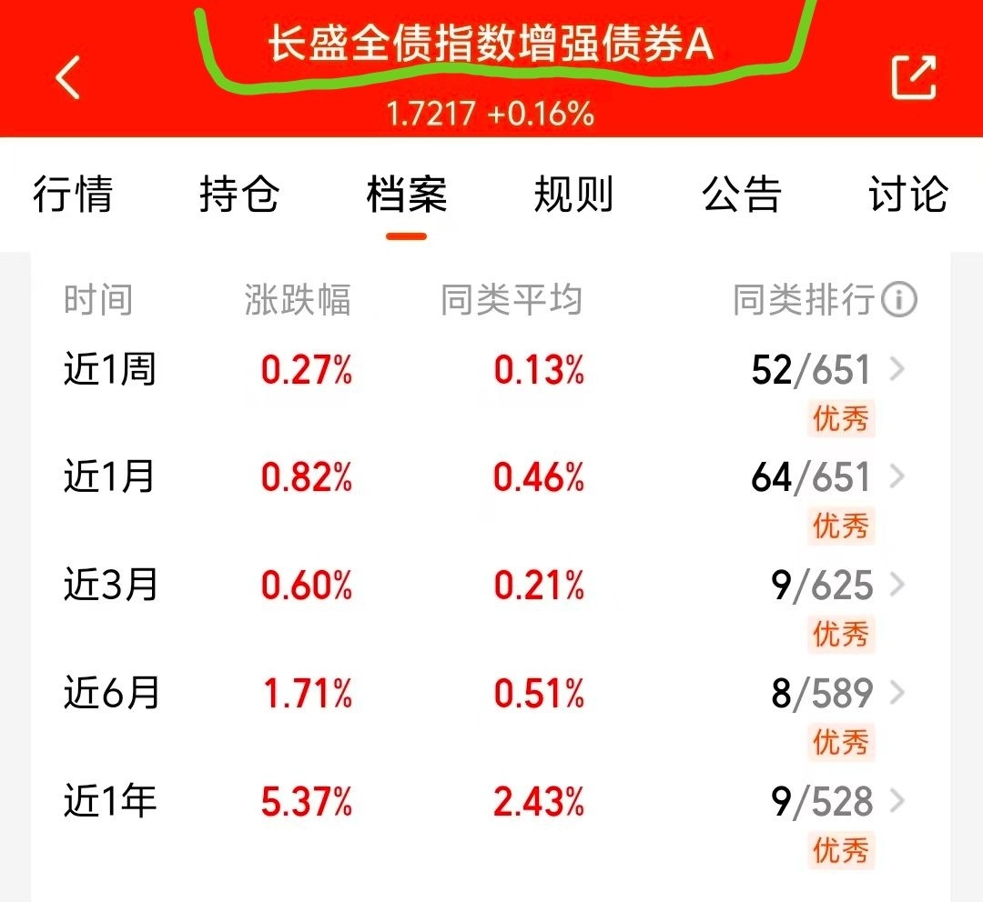 长盛全债指数增强让我超放心,最近市场波动大但债基给力,它昨天收16个大蛋,年化率