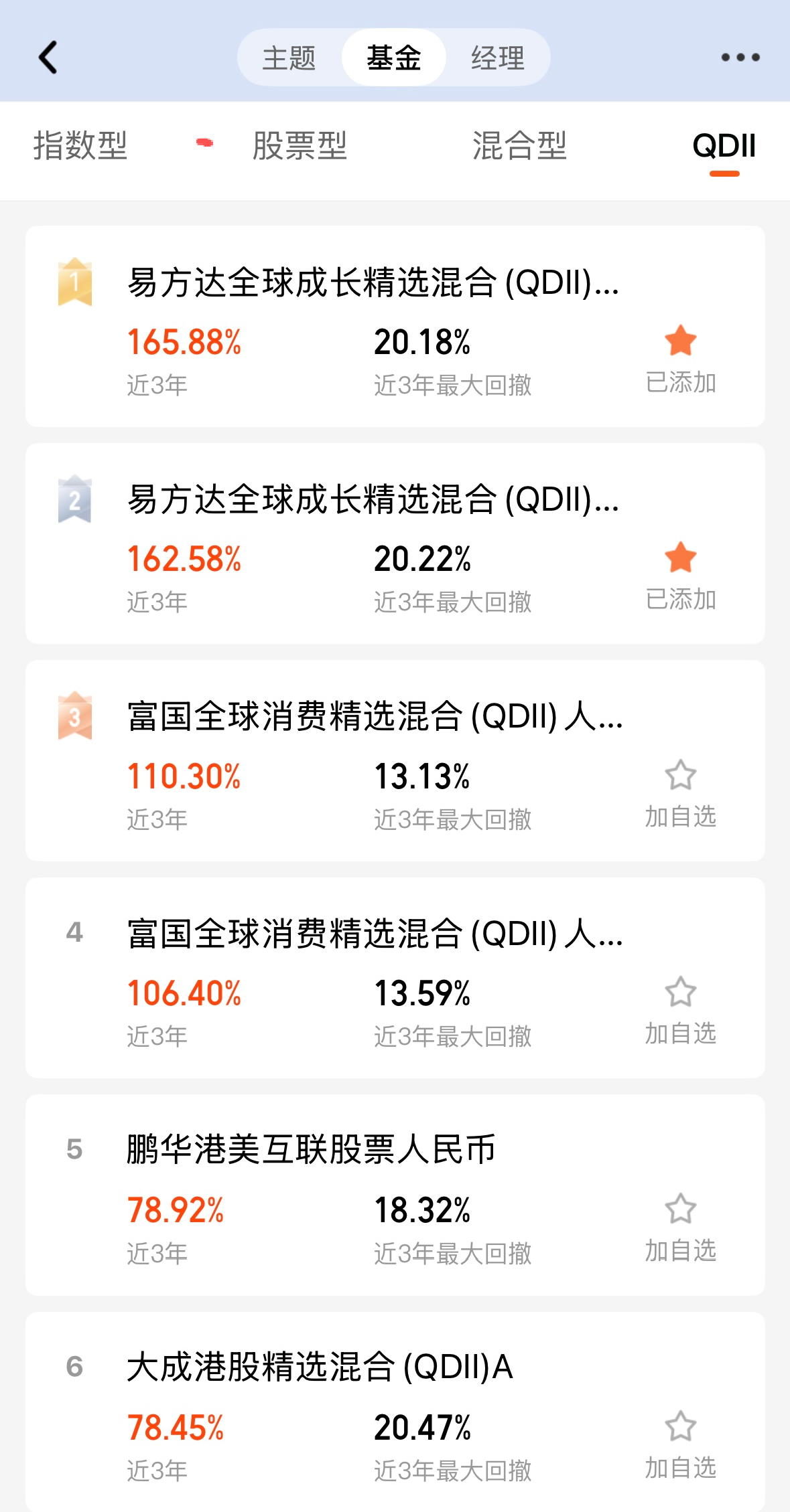 隔夜美股市场不错的了,美股三大指数收红,纳指红0.65%,但是我觉得没反包大家就谨慎些,纳斯达克指数技术面上还是有些风险的。$易方达全球成长精选混合(QDII)人民币A(OTCFUND|012920)$这种能投全球的基相对就抗震,不单吊美股,还有港股、A股科技,近三年165%,近三年最大回撤20%,继续跟着经理稳稳吃肉。