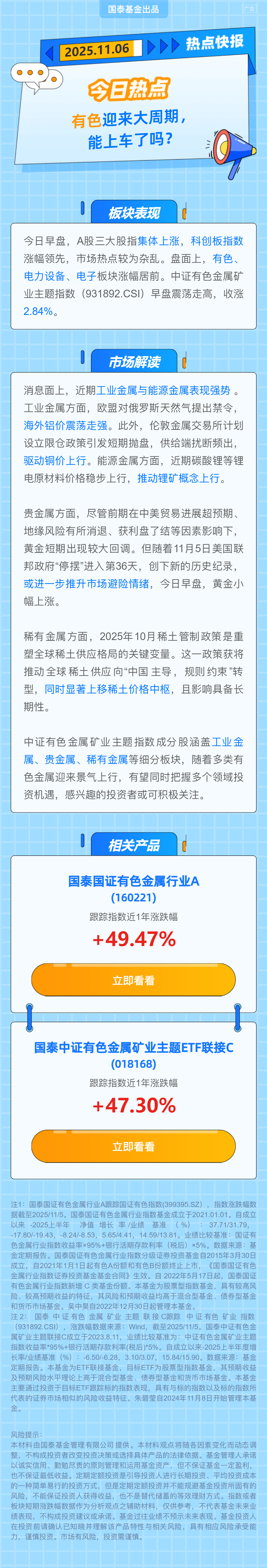 $国泰国证有色金属行业指数(LOF)C(OTCFUND|015596)$$国泰国证有色金属行业指数(LOF)A(OTCFUND|160221)$$国泰中证有色金属矿业主题ETF(OTCFUND|561330)$$国泰有色矿业ETF联接C(OTCFUND|018168)$