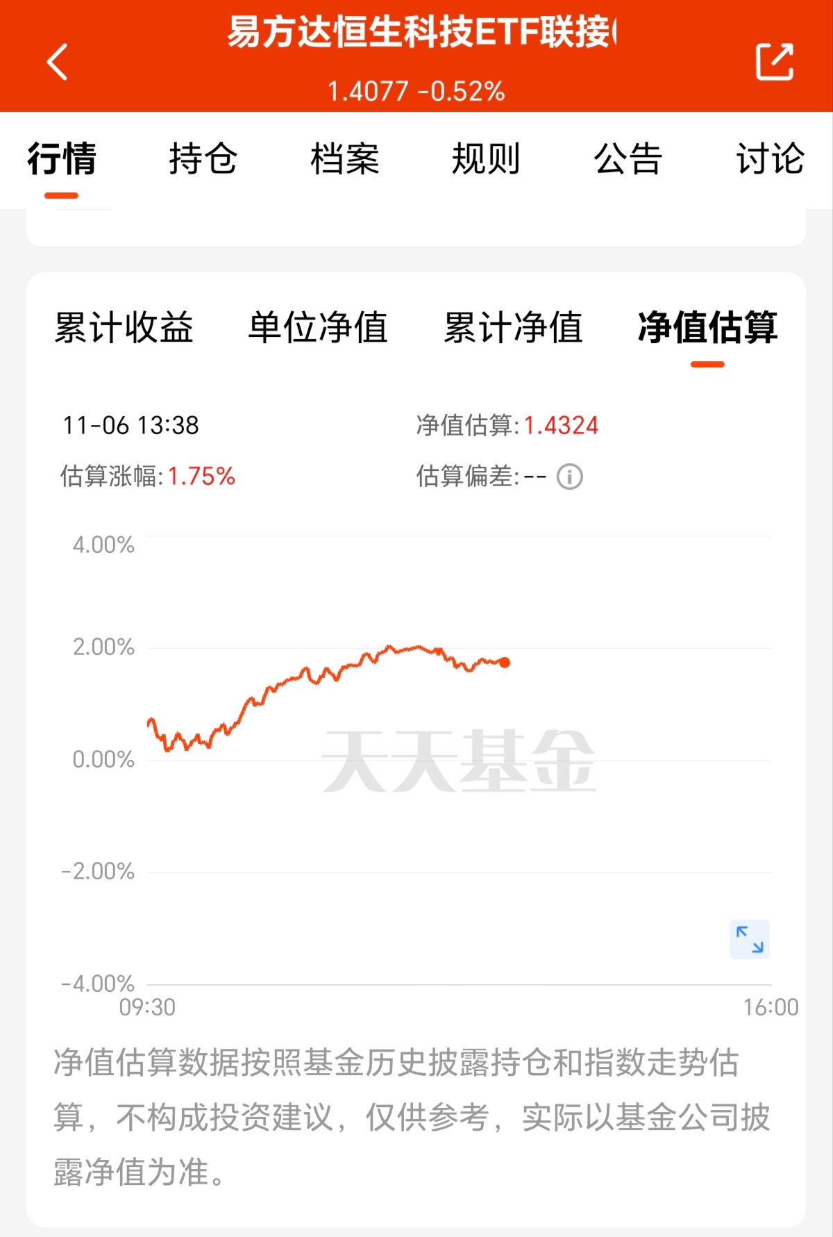 今日港股市场开启反弹回暖,近期恒生科技处于滞涨状态,目前估值已经跌到9月初的水平了,但从整体因素影响来看已经可控,并且当下南向资金还在持续不断流入,我觉得当前位置性价比还是挺高的,所以我准备继续定投,一直持有的$易方达恒生科技ETF联接(QDII)C(OTCFUND|013309)$持仓聚焦于港股科技龙头,具有成长潜力高,上涨动力强的优势,我也将安心拿住了!