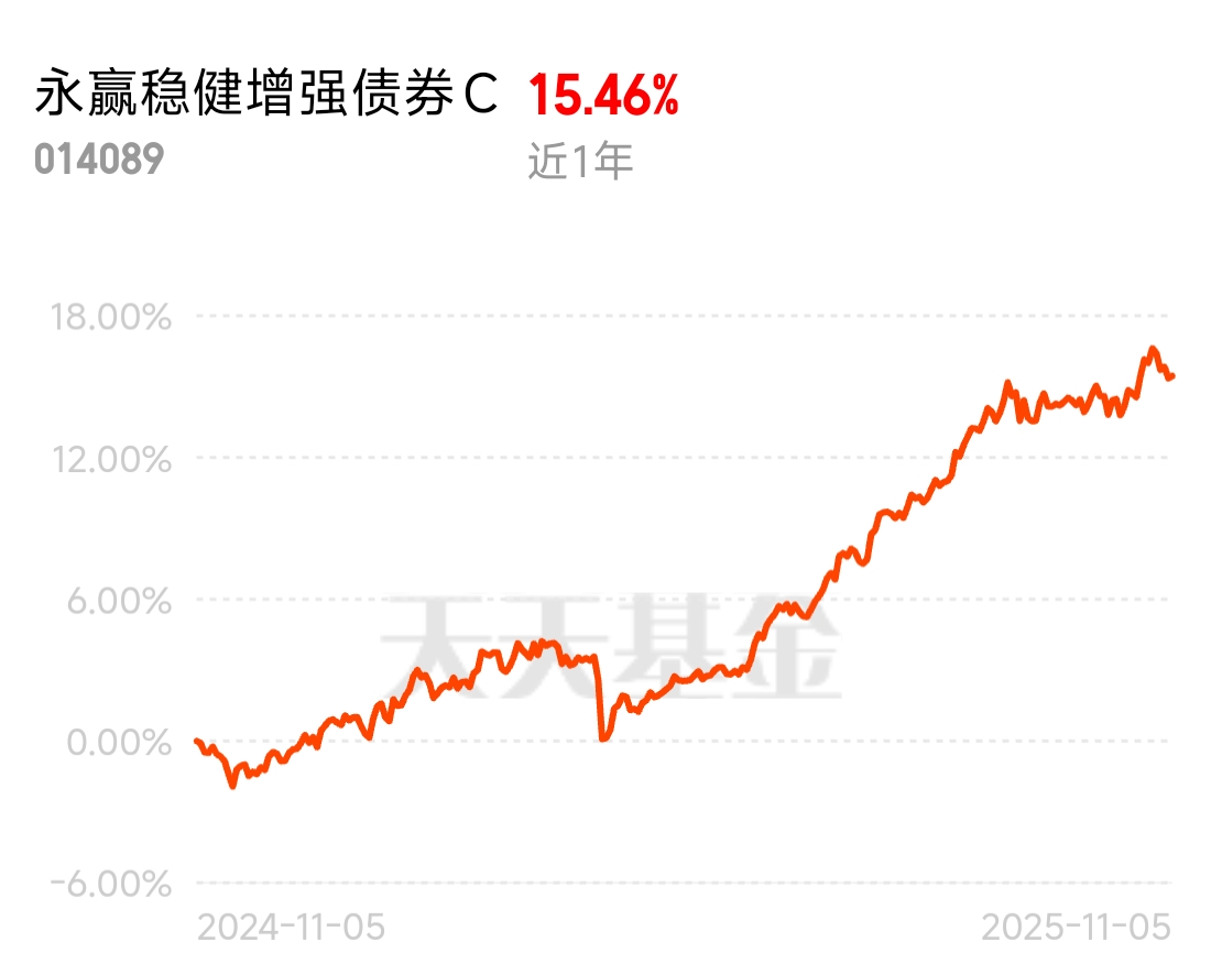 今天市场不错,股债双收,$永赢稳健增强债券C$昨天收蛋10枚,今天看样子至少还能收蛋30枚,中长期业绩也是稳健增涨,近三个月累计433个蛋,近半年累计1282个蛋,近一年收益高达15%,在固收加里算是佼佼者了,这种股债组合产蛋更多,展现出能涨抗跌的特点,也让很多投资者更信赖这类产品,想要等到更多的收益不妨布局试一试了$永赢稳健增强债券C$